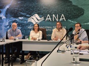 No tema monitoramento hidrológico, foram apresentadas informações sobre a integração entre a Sala de Situação da ANA e a do CBH Paranaíba, destacando também a importância da consolidação e interoperabilidade entre bases de dados. Foi ressaltada a necessidade da criação de Planos Estaduais de Enfrentamento à Seca, incluindo diagnóstico de áreas vulneráveis, definição de gatilhos para ações estruturais e não estruturais, com base no grau de severidade conforme o Mapa de Monitoramento de Secas e Inundações da ANA. Também foi sugerida a elaboração de Planos de Gestão de Eventos Críticos, como inundações e enxurradas.