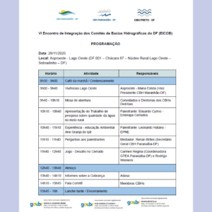 Os membros do comitê de bacia do Distrito Federal deverão acessar o link para se inscrever no VI Encontro de Integração dos Comitês de bacia do Distrito Federal.